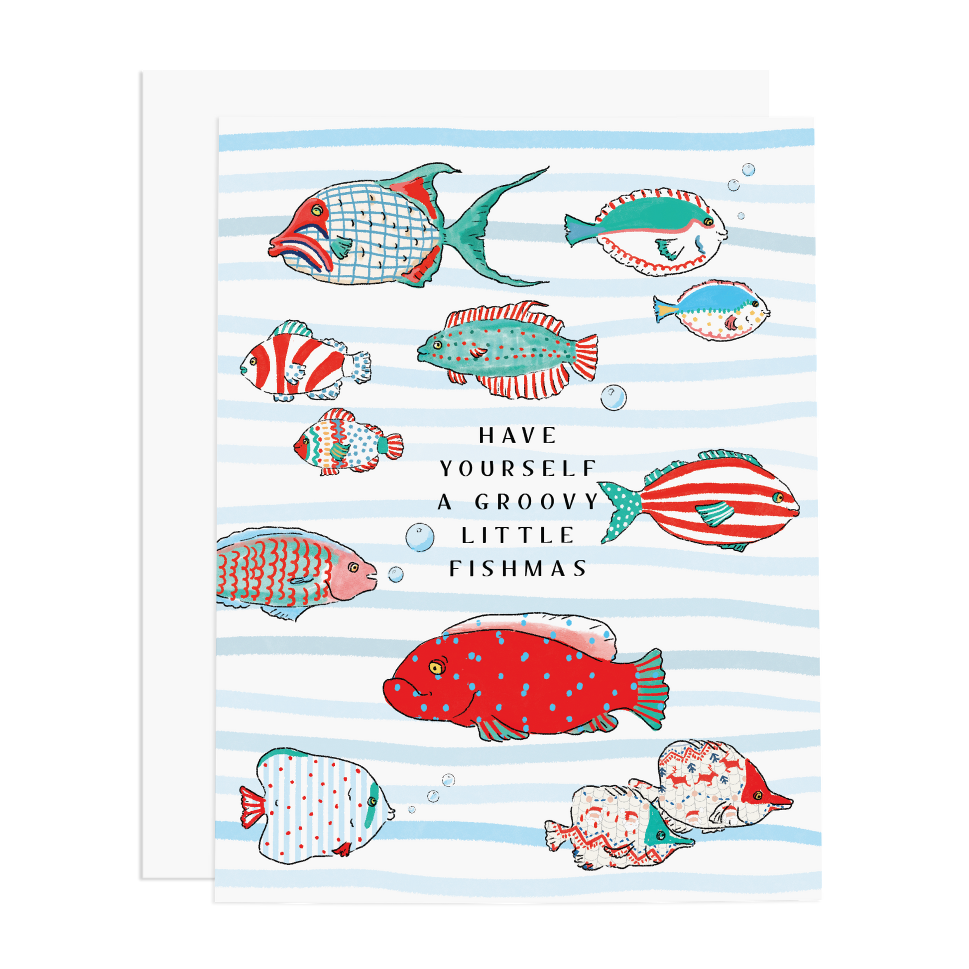 Swim into the holiday season with a holiday fish parade: "Have Yourself a Groovy Little Fishmas." Perfect for those who love the sea.